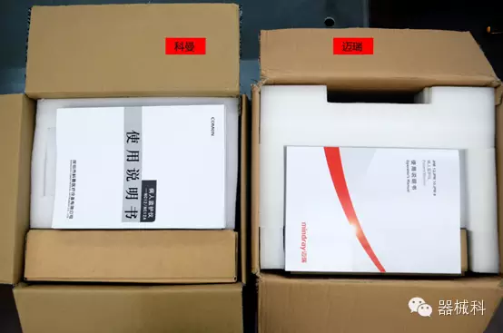 在儀器包裝上,科曼NC12和IPM12都是采用珍珠棉進行包裝,但科曼NC12采用360°無死角的全包裹方式,雖然看起來臃腫,但是更能保證儀器在運輸途中的安全;邁瑞IPM12采用半包裹的方式,看起來簡潔清爽,但存在一定的安全隱患。