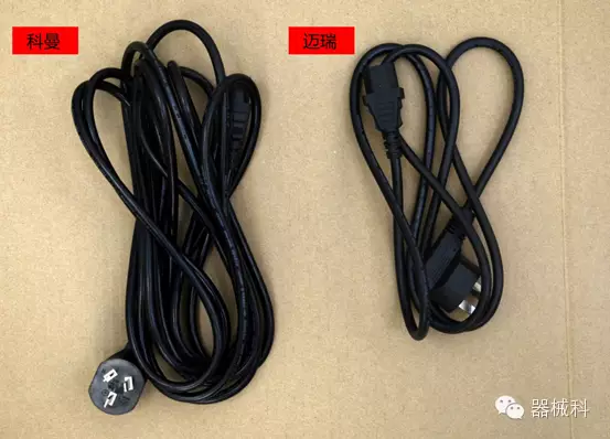 兩家的電源線都采用了標準的電源插頭,這種電源線比較普遍,應急時比較容易找到合適的線。邁瑞線長1.8,一般情況下夠用。科曼3米長,在使用上可以更加靈活。線短,整理起來方面;線長,使用場景更多。