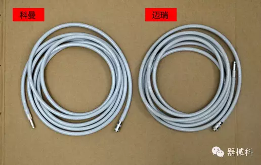 科曼采用防除顫分體夾式5導聯(lián)線,分纜長度為LA,RA,V導聯(lián)1米;RL,LL導聯(lián)1.6米;邁瑞采用防除顫一體扣式5導聯(lián),分纜統(tǒng)一為0.6米,主纜部分長度一樣。導聯(lián)線上的分纜,容易損壞。如果只是分纜換了,分體式只用換掉分纜就行了,而一體式只能換掉附件,減少不必要的浪費,提高使用率,節(jié)約成本。