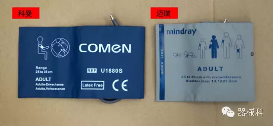 兩家都采用防水面料和薄膜氣囊。科曼顏色更深,不知道是不是因為深色耐臟。袖套看起來要厚點,不過摸起來也一樣柔軟。邁瑞是不經臟的白色,拿起來會發(fā)現(xiàn)更柔軟?;蛟S是深色顯得明亮,對比之下,總覺得邁瑞的袖套看起來舊舊的。